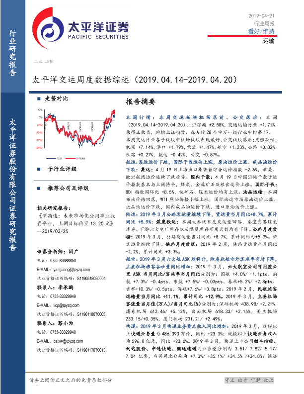 【太平洋证券】【20190421】太平洋交运周度数据综述-44页