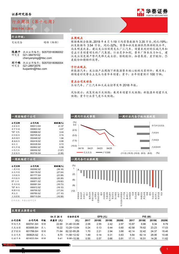 【华泰证券】【20190429】交运设备行业周报(第十七周)-15页