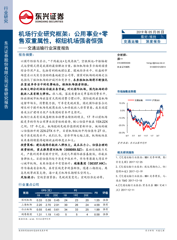 【东兴证券】【20190505】机场行业研究框架:公用事业+零售双重属性,枢纽机场强者恒强-30页