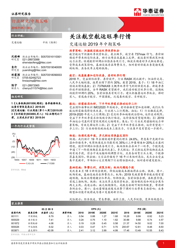 【华泰证券】【20190509】交通运输2019年中期策略:关注航空航运旺季行情-40页