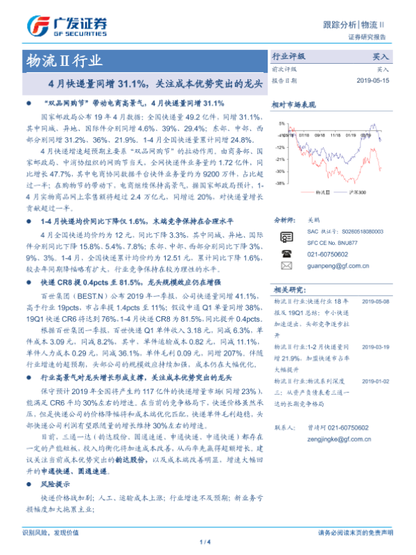 【广发证券】【20190515】4月快递量同增31.1%,关注成本优势突出的龙头-4页