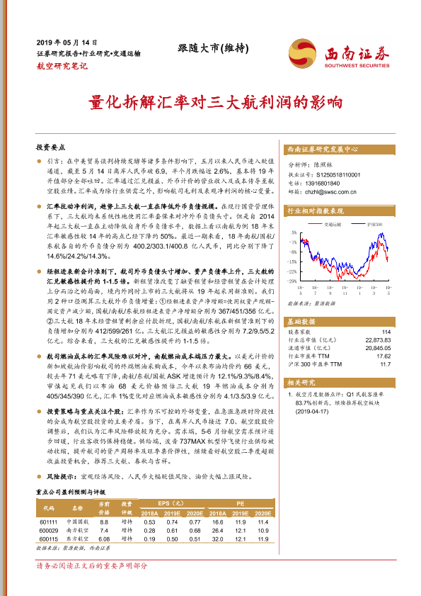 【西南证券】【20190514】量化拆解汇率对三大航利润的影响-15页