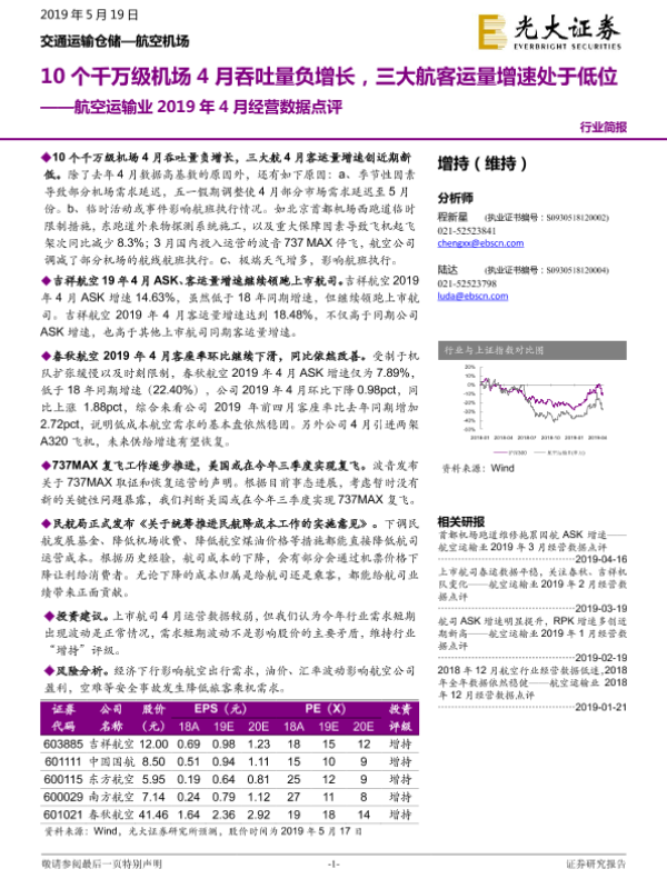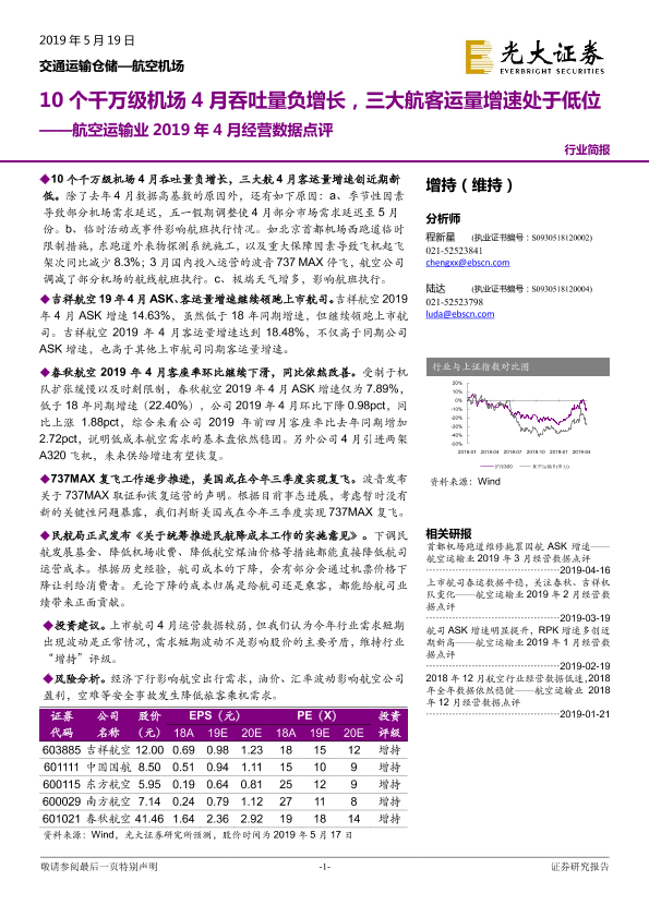 【光大证券】【20190519】航空运输业2019年4月经营数据点评-5页