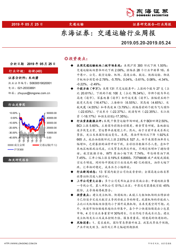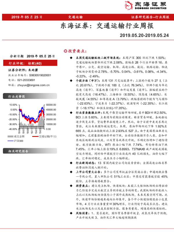 【东海证券】【20190525】交通运输行业周报-9页