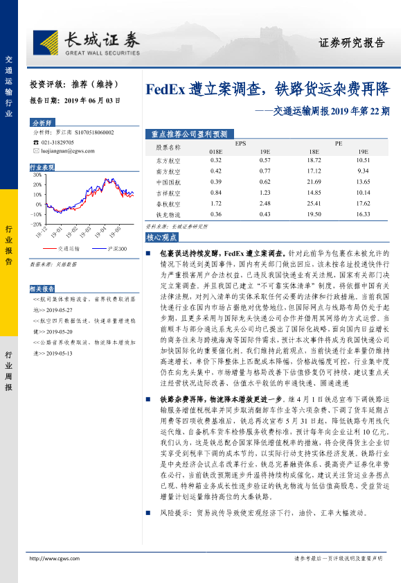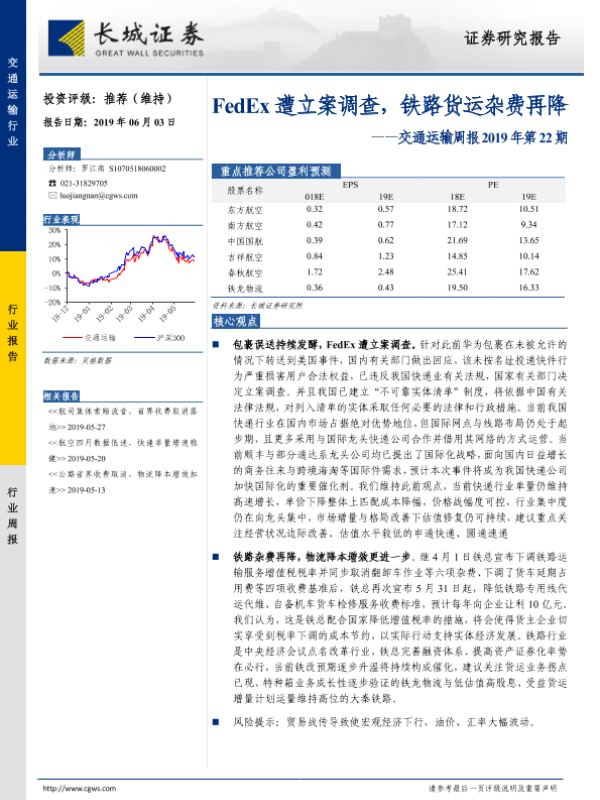 【长城证券】【20190603】FedEx遭立案调查,铁路货运杂费再降-19页
