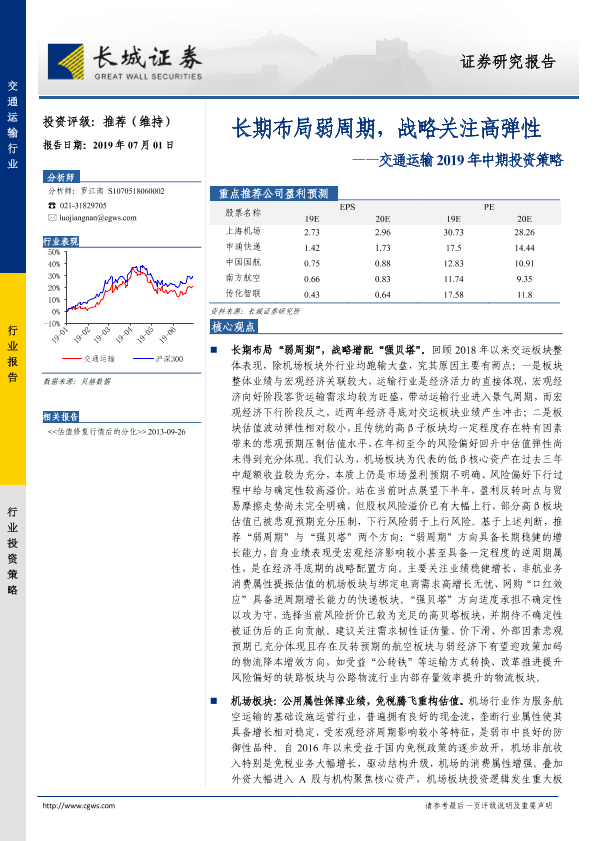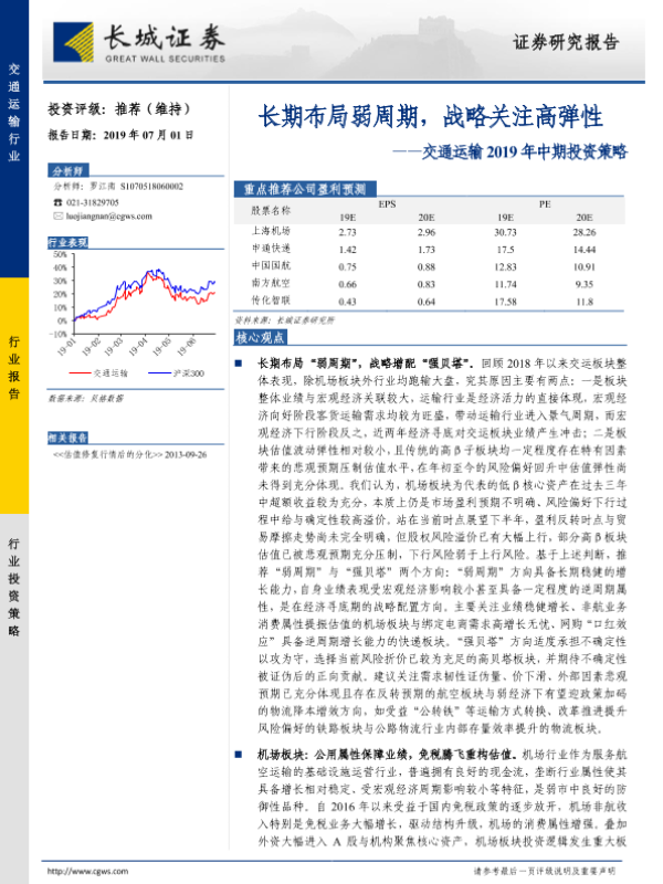 【长城证券】【20190701】交通运输2019年中期投资策略:长期布局弱周期,战略关注高弹性-34页