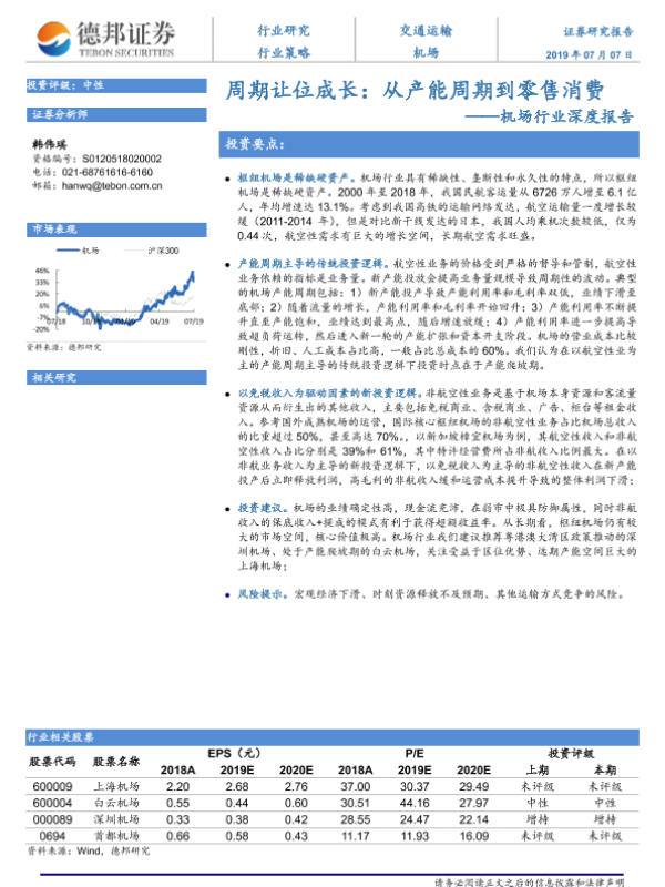 产能周期 免税收入 投资分析 机场行业 非航空性收入