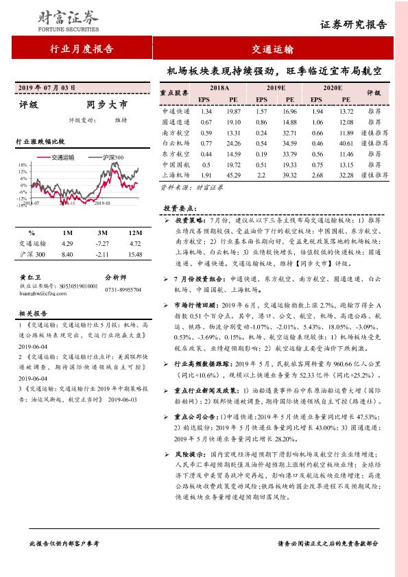 【财信证券】【20190703】交通运输行业月度报告:机场板块表现持续强劲,旺季临近宜布局航空-20页