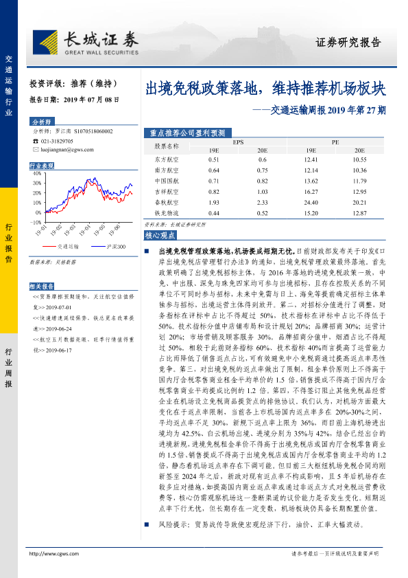 【长城证券】【20190708】出境免税政策落地,维持推荐机场板块-17页