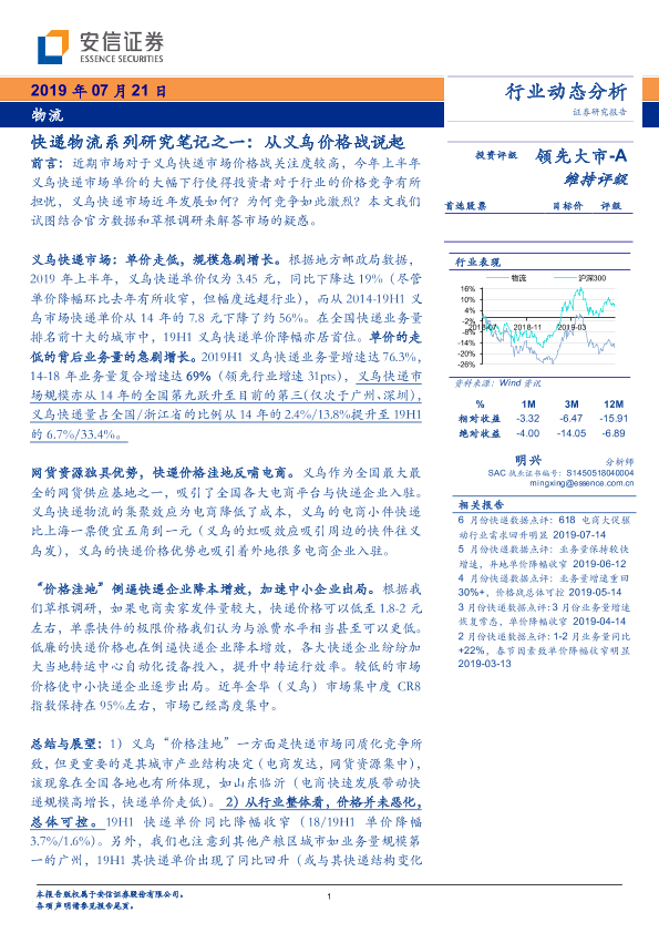 【安信证券】【20190721】快递物流系列研究笔记之一:从义乌价格战说起-9页