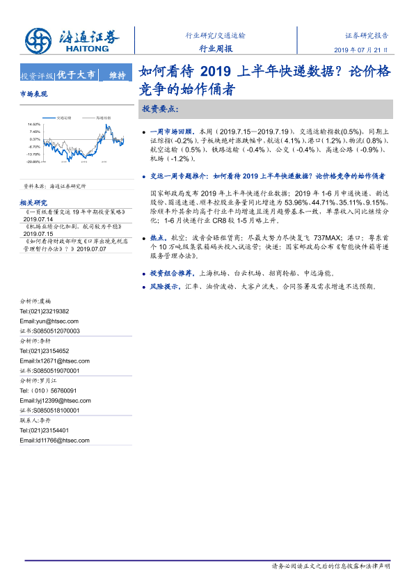 【海通证券】【20190721】如何看待2019上半年快递数据?论价格竞争的始作俑者-8页