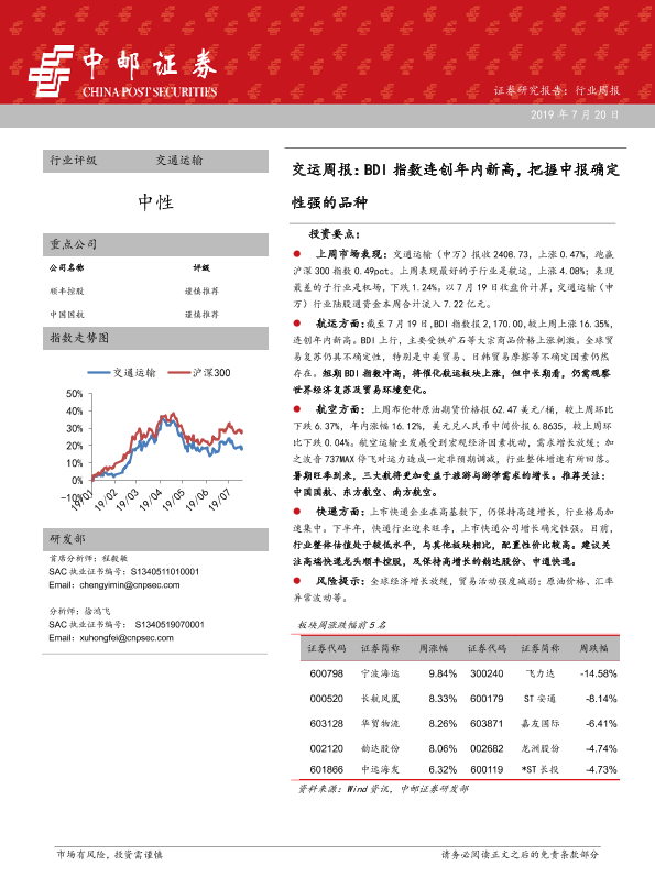【中邮证券】【20190720】交运周报:BDI指数连创年内新高,把握中报确定性强的品种-18页