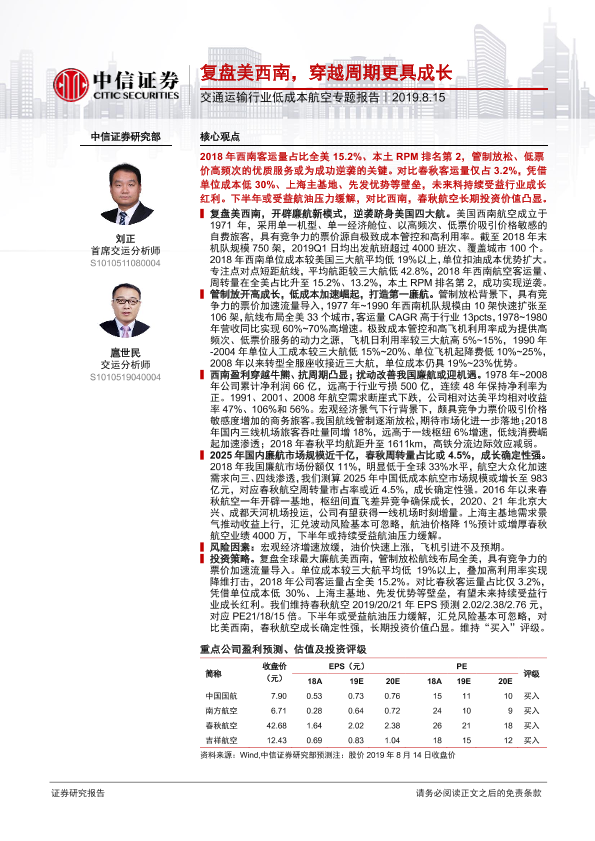 【中信证券】【20190815】交通运输行业低成本航空专题报告:复盘美西南,穿越周期更具成长-31页