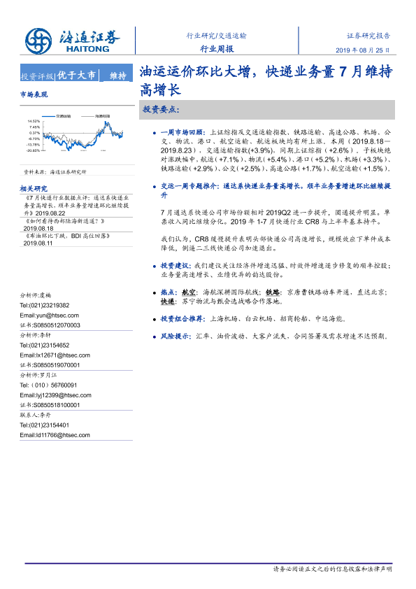 【海通证券】【20190825】油运运价环比大增,快递业务量7月维持高增长-8页