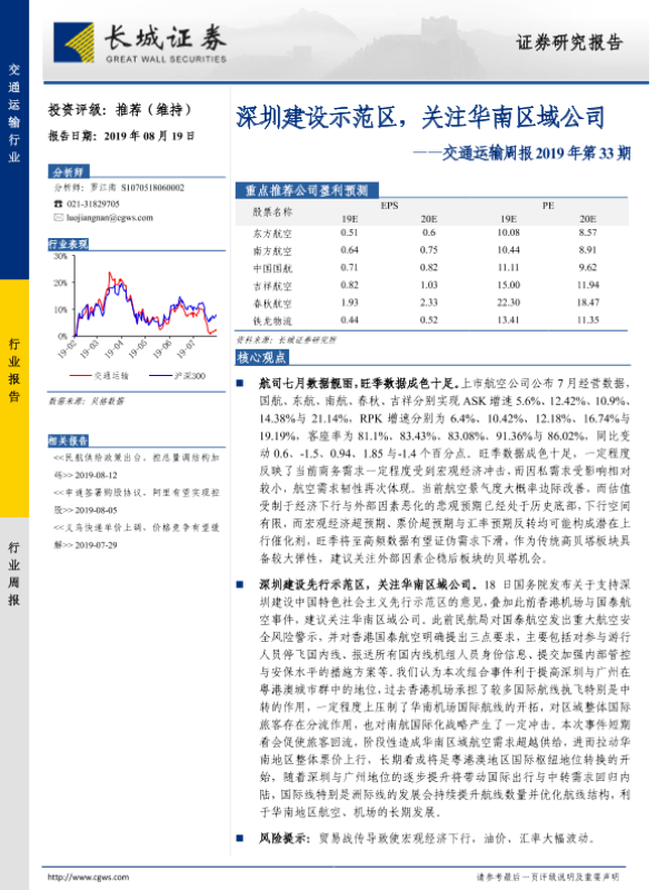 交通运输 宏观经济 投资分析 深圳示范区 航空业