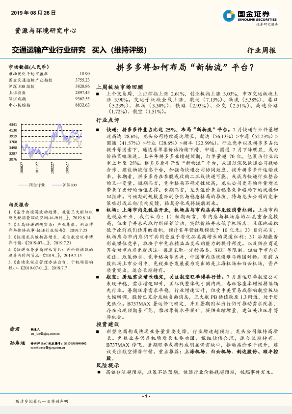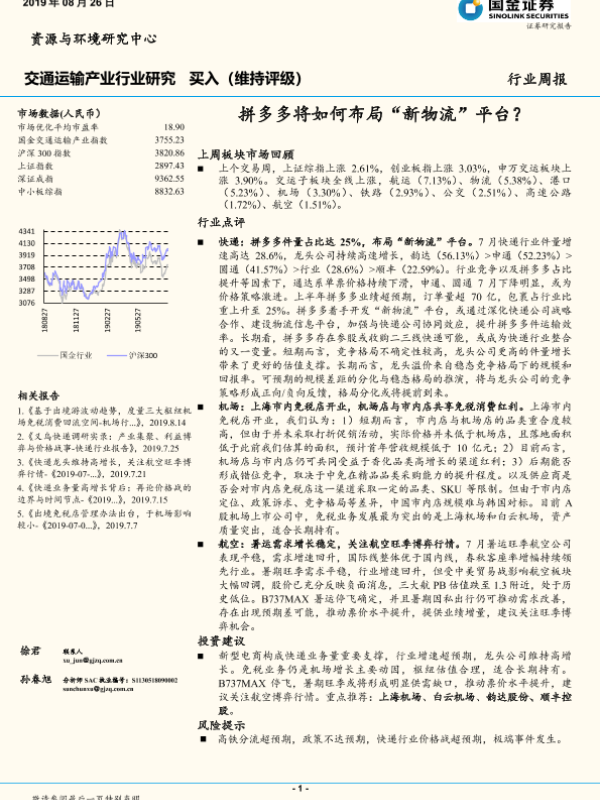 【国金证券】【20190826】交通运输产业行业研究周报:拼多多将如何布局“新物流”平台?-18页