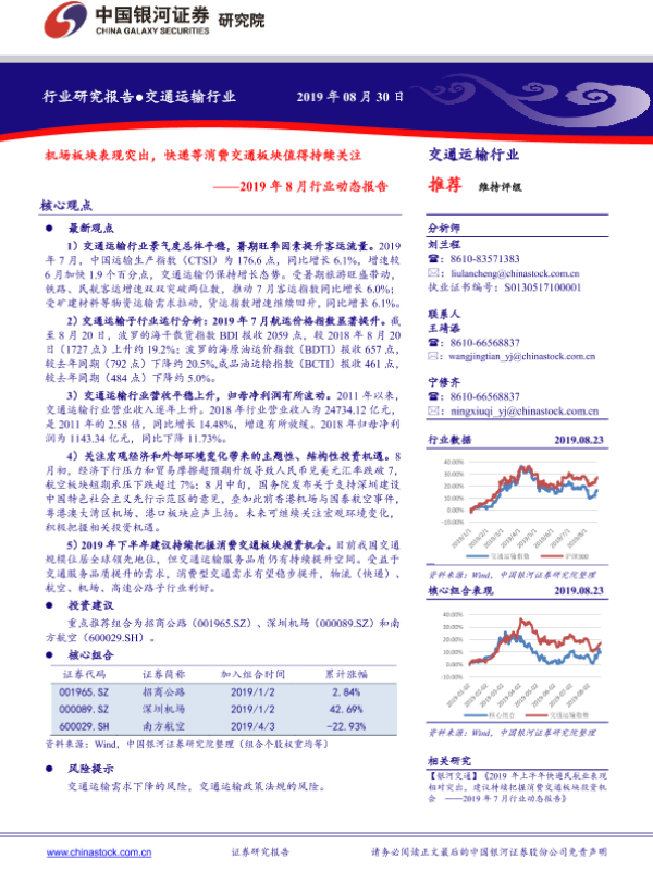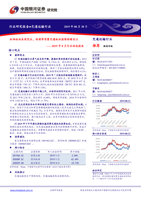 【银河证券】【20190830】交通运输2019年8月行业动态报告:机场板块表现突出,快递等消费交通板块值得持续关注-43页