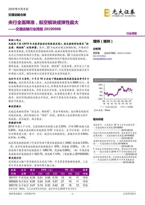 【光大证券】【20190908】交通运输行业周报:央行全面降准,航空板块或弹性最大-7页