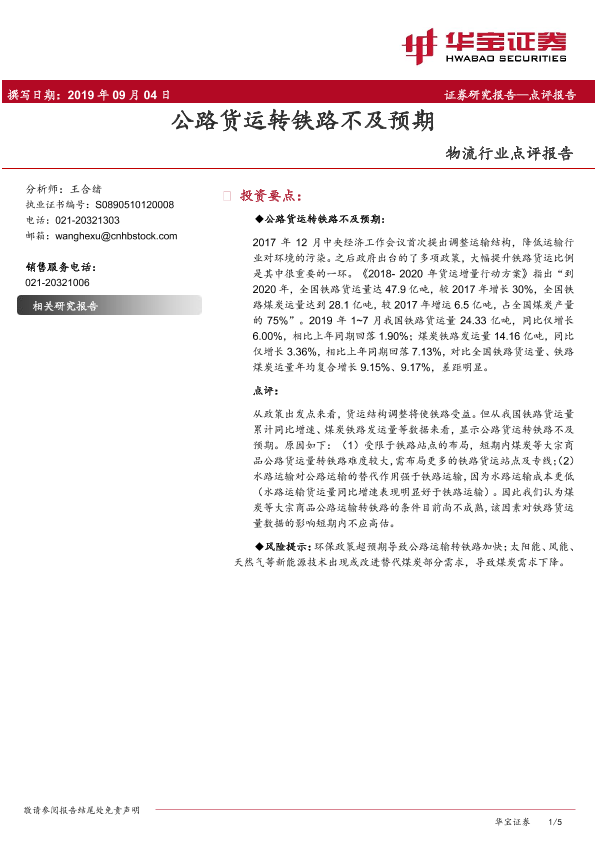 【华宝证券】【20190904】公路货运转铁路不及预期-5页