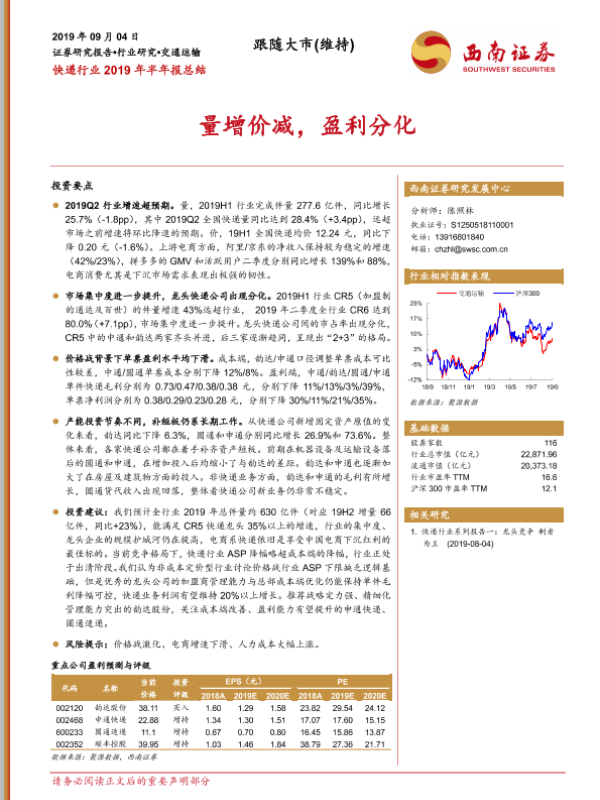 【西南证券】【20190904】快递行业2019年半年报总结-17页
