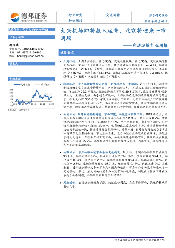 【德邦证券】【20190909】交通运输行业周报:大兴机场即将投入运营,北京将迎来一市两场-10页