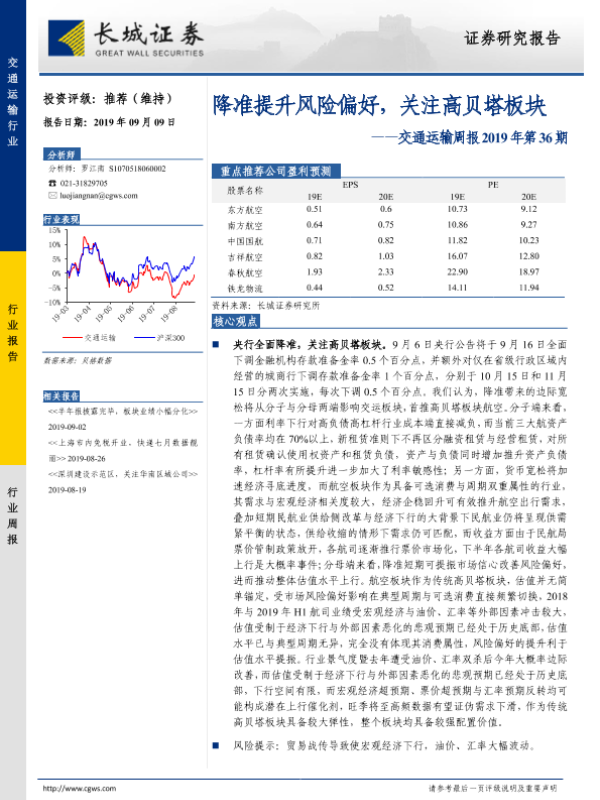 交通运输 宏观经济 航空板块 降准政策 风险偏好