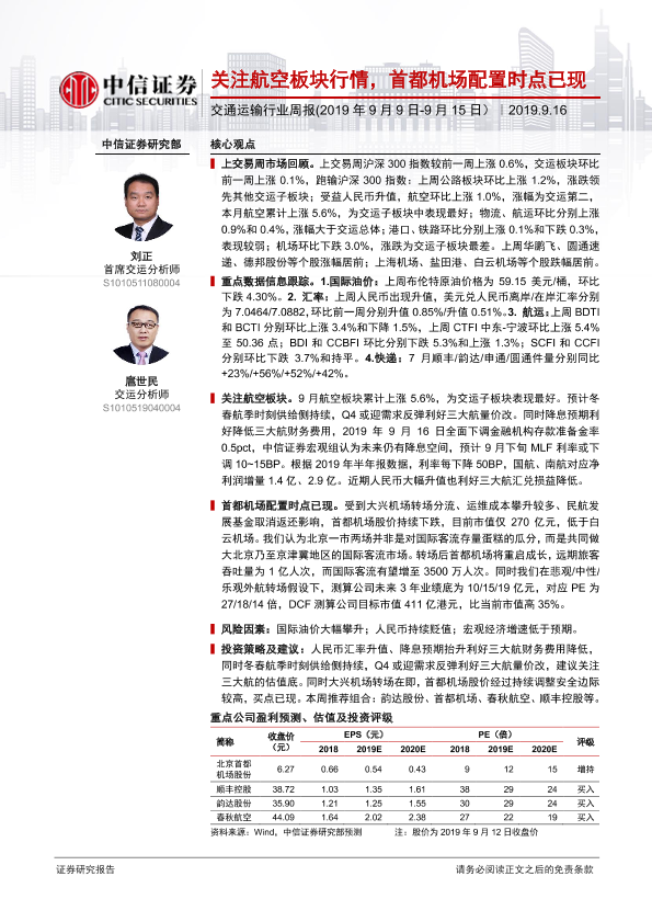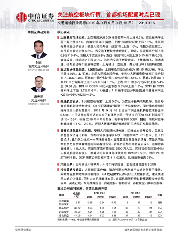 【中信证券】【20190916】关注航空板块行情,首都机场配置时点已现-23页