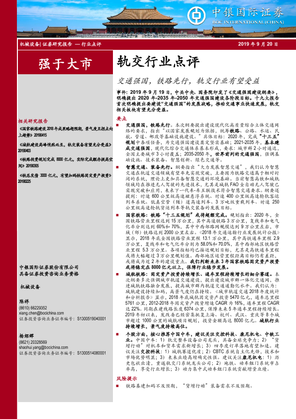 【中银证券】【20190920】轨交行业点评:交通强国,铁路先行,轨交行业有望受益-4页