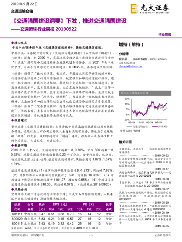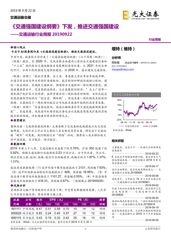 【光大证券】【20190922】交通运输行业周报:《交通强国建设纲要》下发,推进交通强国建设-7页