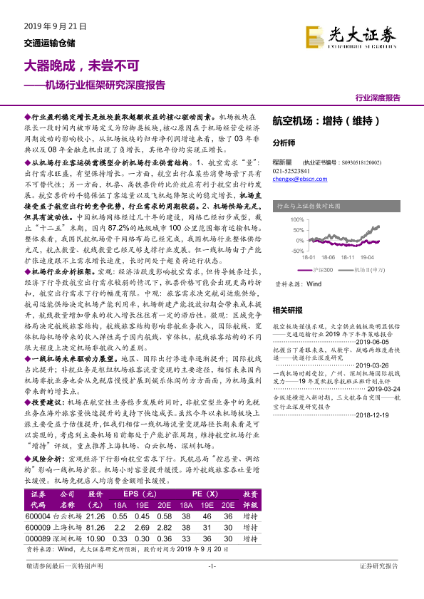【光大证券】【20190921】机场行业框架研究深度报告:大器晚成,未尝不可-50页
