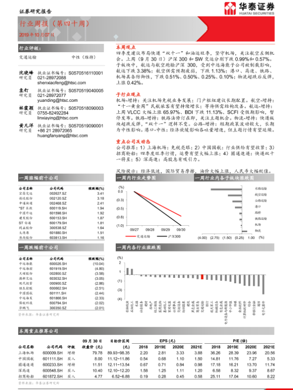 【华泰证券】【20191007】交通运输行业周报(第四十周)-10页