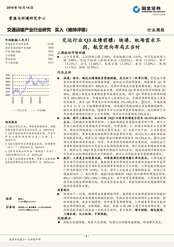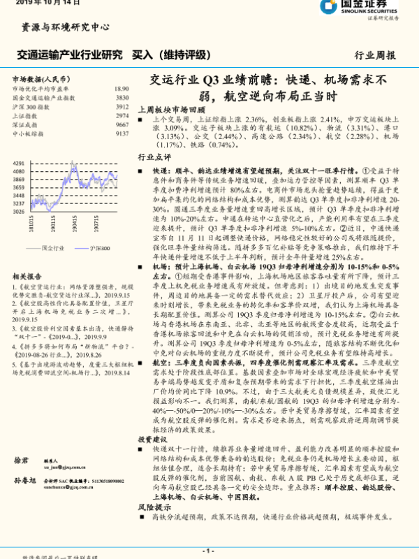 【国金证券】【20191014】交运行业Q3业绩前瞻:快递、机场需求不弱,航空逆向布局正当时-11页
