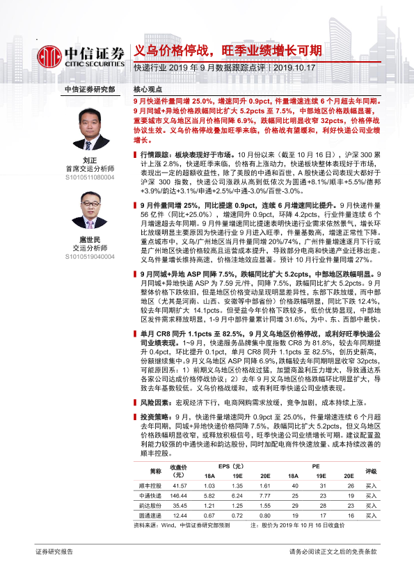 【中信证券】【20191017】快递行业2019年9月数据跟踪点评-11页