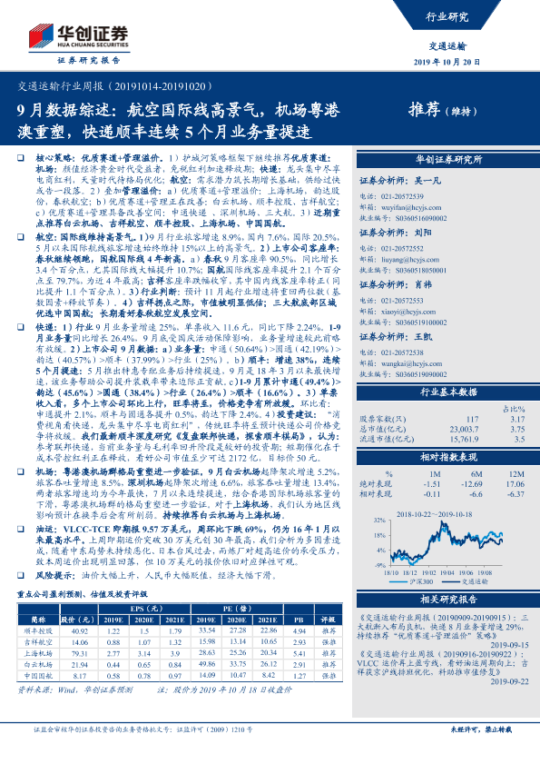 【华创证券】【20191020】交通运输行业周报:9月数据综述-20页