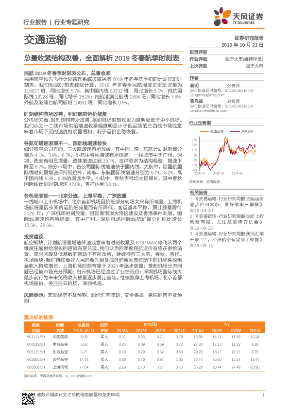 【天风证券】【20191021】交通运输行业专题研究:总量收紧结构改善,全面解析2019冬春航季时刻表-11页