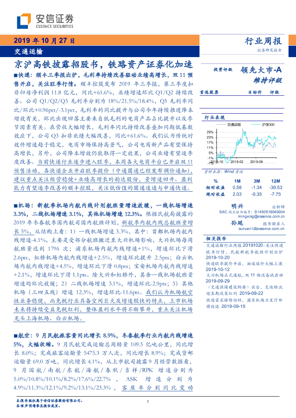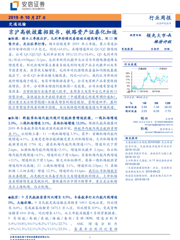 【安信证券】【20191027】交通运输行业周报:京沪高铁披露招股书,铁路资产证券化加速-20页