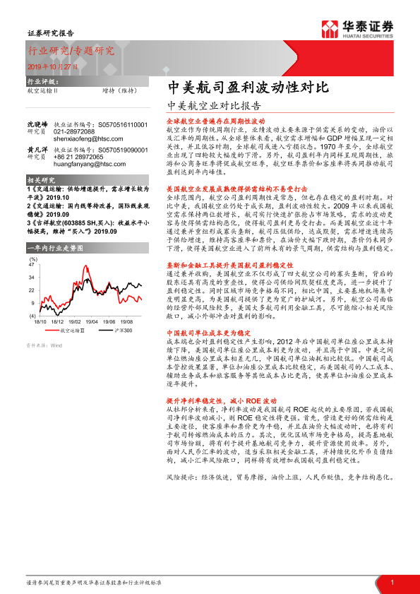 【华泰证券】【20191027】中美航空业对比报告:中美航司盈利波动性对比-18页