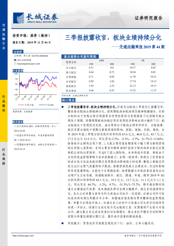 业绩分析 交通运输 周期性行业 宏观经济影响 航空运输