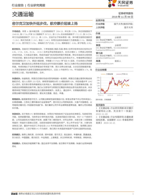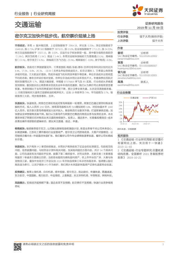 【天风证券】【20191109】交通运输行业研究周报:密尔克卫加快外延步伐,航空票价延续上扬-14页