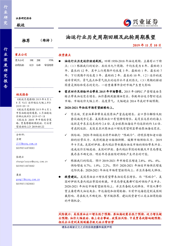 【兴业证券】【20191110】油运行业历史周期回顾及此轮周期展望-21页