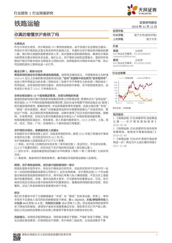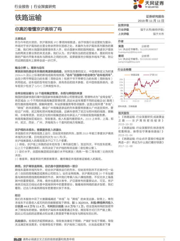 【天风证券】【20191111】你真的看懂京沪高铁了吗-13页