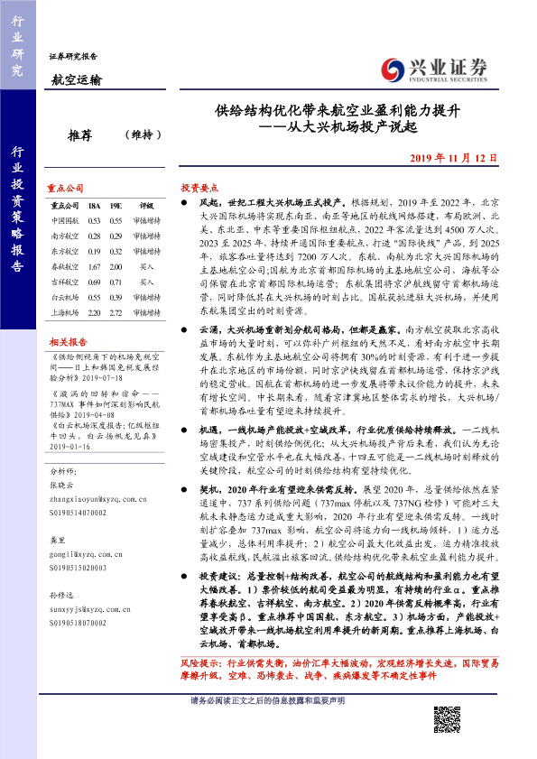 【兴业证券】【20191112】供给结构优化带来航空业盈利能力提升——从大兴机场投产说起-45页