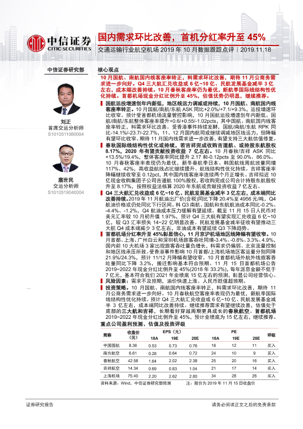 【中信证券】【20191118】交通运输行业航空机场2019年10月数据跟踪点评-9页
