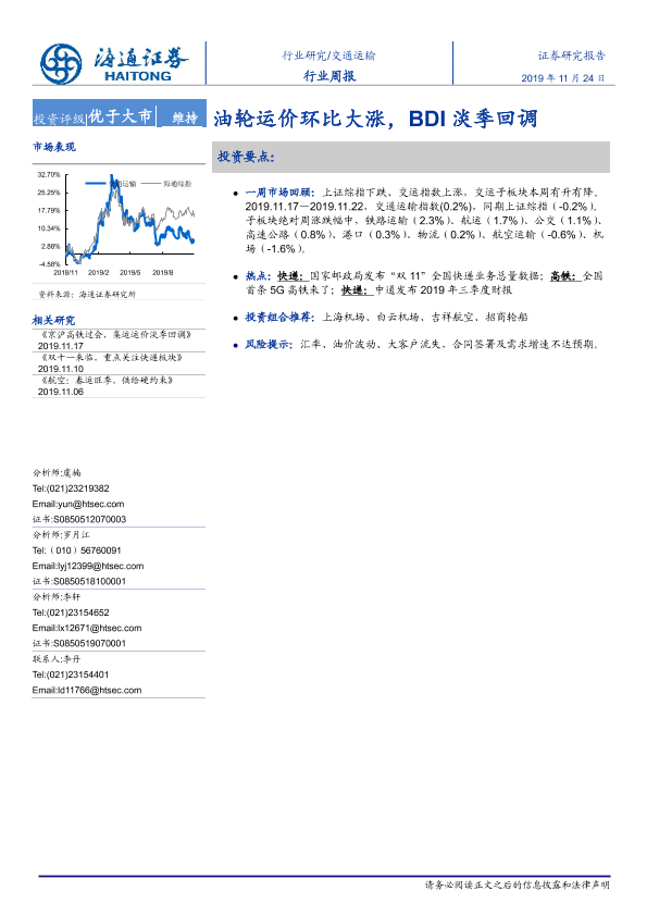 【海通证券】【20191124】交通运输行业周报:油轮运价环比大涨,BDI淡季回调-8页