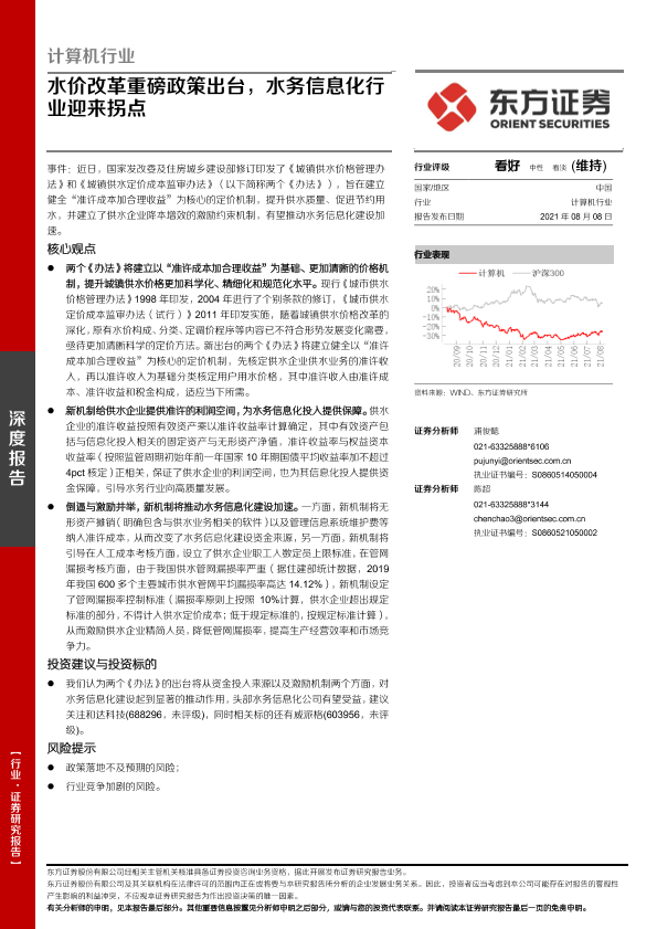 【东方证券】【20210808】计算机行业:水价改革重磅政策出台,水务信息化行业迎来拐点-14页