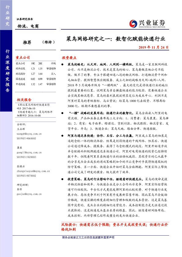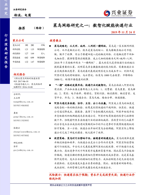 【兴业证券】【20191124】菜鸟网络研究之一:数智化赋能快递行业-39页