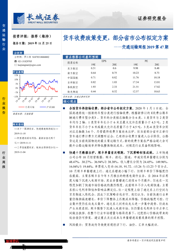 长城证券 交通运输仓储邮政 2019年 PDF 2.15 MB