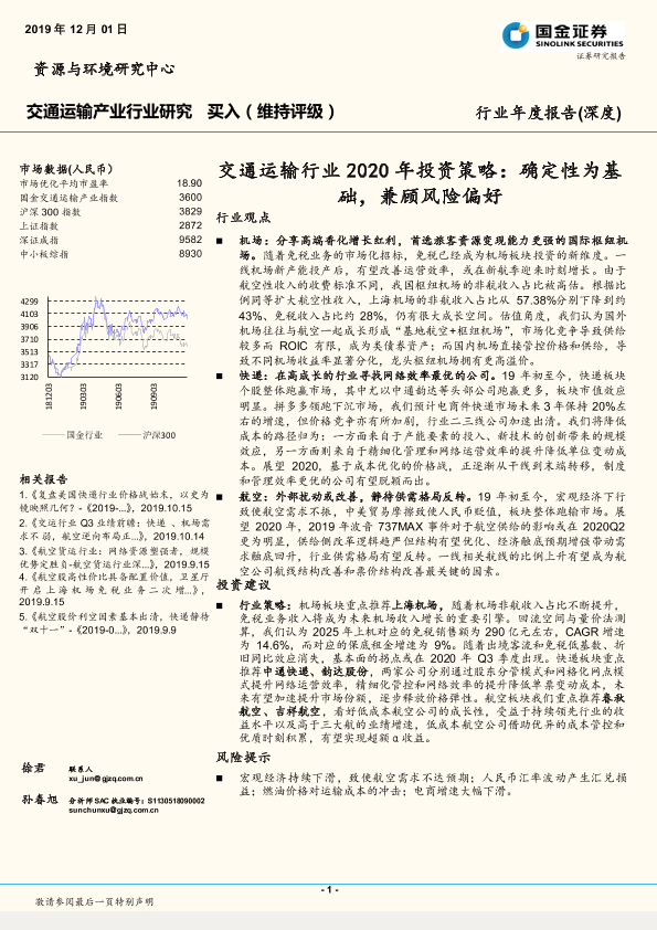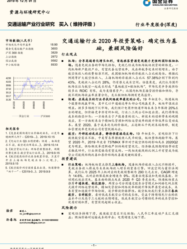 【国金证券】【20191201】交通运输行业2020年投资策略:确定性为基础,兼顾风险偏好-21页