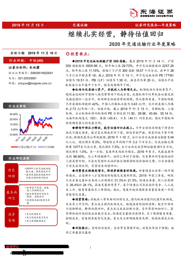 【东海证券】【20191115】2020年交通运输行业年度策略:继续扎实经营,静待估值回归-25页