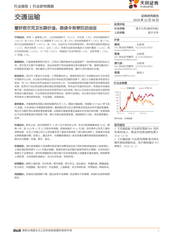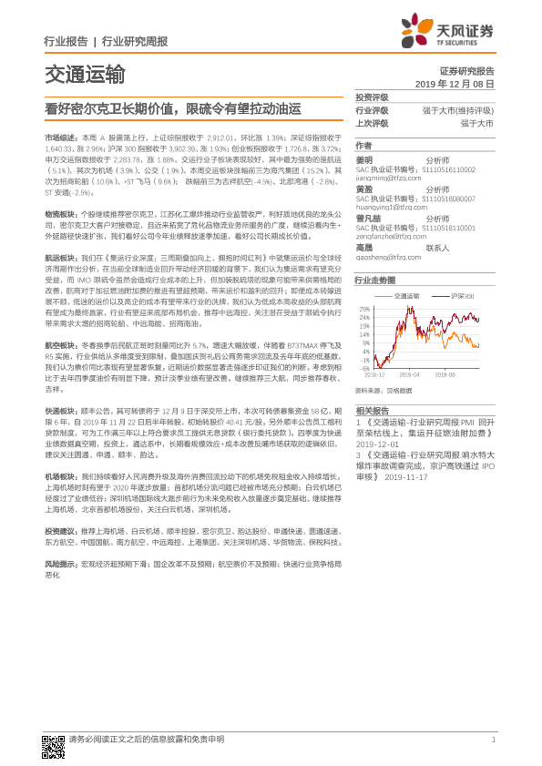 【天风证券】【20191208】交通运输行业研究周报:看好密尔克卫长期价值,限硫令有望拉动油运-15页